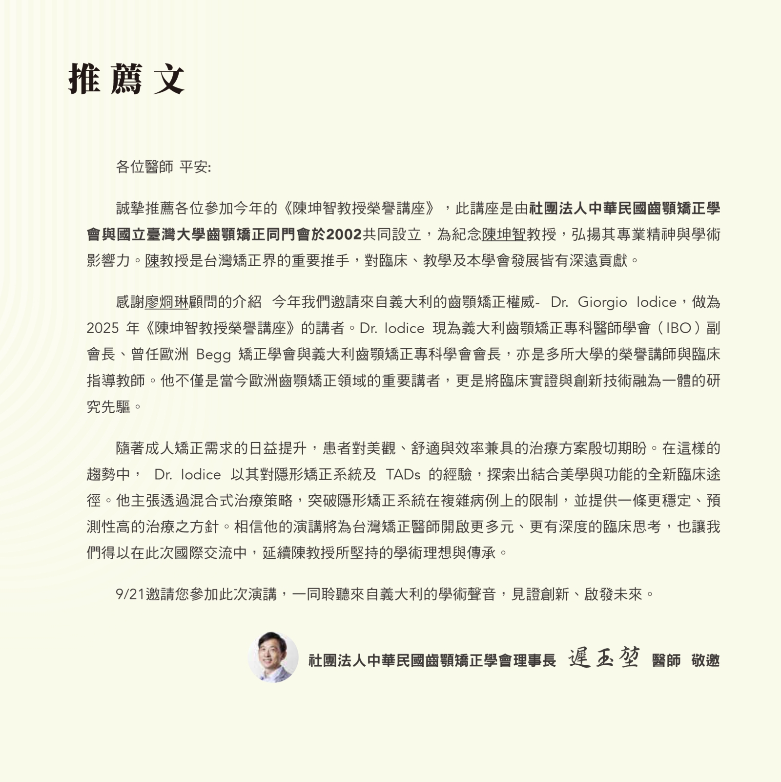 2025陳坤智教授榮譽講座 - Clear Aligners & TADs
