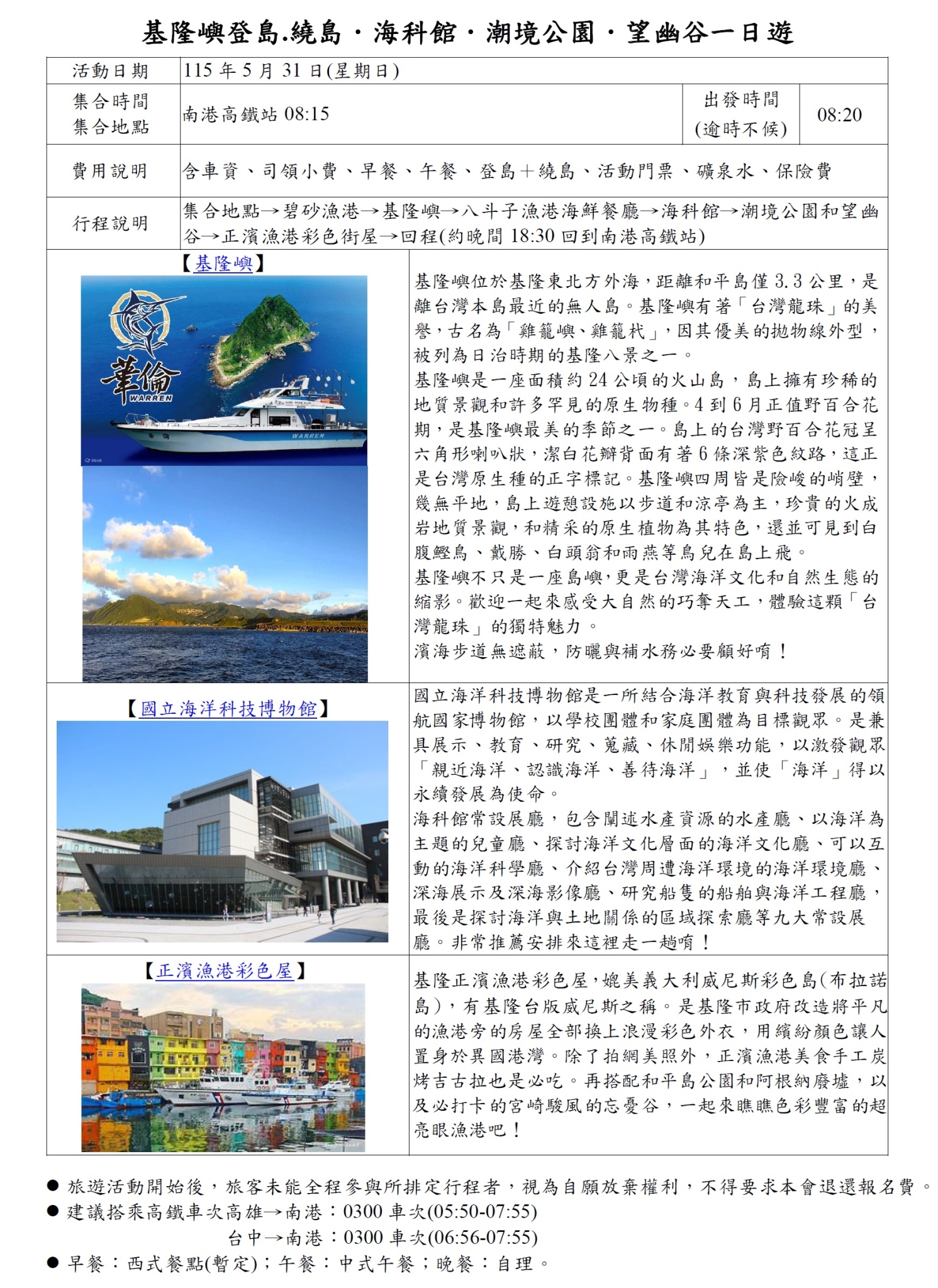 基隆嶼登島.繞島.海科館.潮境公園.望幽谷一日遊